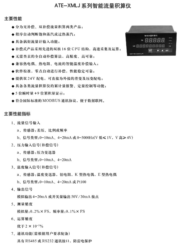 ATE—XMLJ系列智能流量积算仪/金湖中泰仪表有限公司(原安科自动化仪表厂)是集科、工为一体的机械加工、仪器仪表生产的专业企业,公司主营产品:HART475、375、275、388手操器、智能压力表校验仪、真空压力表校验仪、便携式分体压力校验仪、温度校验仪,信号发生器,六氟化硫校验仪,精密数字压力表、数字式压力计、全量程压力校验仪、电磁流量计、涡街流量计、旋进旋涡流量计,压力变送器、液位变送器、温度变送器,台式液压,气压,压力泵、热电偶/电阻校验仿真仪,节流孔板,显示仪表,校验系统等自动化仪器仪表。产品广泛应用于电力、冶金、化工、油气、航空等领域,深受广大用户的好评。 公司自创建以来,始终秉承以市场需求为导向、以用户满意为宗旨、以品牌经营为核心经营的理念。通过不断的创新和投入推动公司持续发展。欢迎您的垂询