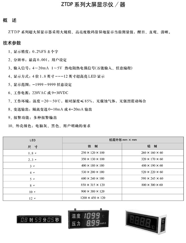 大屏数字显示仪/器,金湖中泰仪表有限公司(原安科自动化仪表厂)是集科、工为一体的机械加工、仪器仪表生产的专业企业,公司主营产品:HART475、375、275、388手操器、智能压力表校验仪、真空压力表校验仪、便携式分体压力校验仪、温度校验仪,信号发生器,六氟化硫校验仪,精密数字压力表、数字式压力计、全量程压力校验仪、电磁流量计、涡街流量计、旋进旋涡流量计,压力变送器、液位变送器、温度变送器,台式液压,气压,压力泵、热电偶/电阻校验仿真仪,节流孔板,显示仪表,校验系统等自动化仪器仪表。产品广泛应用于电力、冶金、化工、油气、航空等领域,深受广大用户的好评。 公司自创建以来,始终秉承以市场需求为导向、以用户满意为宗旨、以品牌经营为核心经营的理念。通过不断的创新和投入推动公司持续发展。欢迎您的垂询