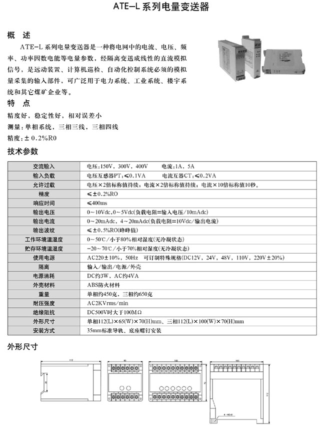 电量变送器/金湖中泰仪表有限公司(原安科自动化仪表厂)是集科、工为一体的机械加工、仪器仪表生产的专业企业,公司主营产品:HART475、375、275、388手操器、智能压力表校验仪、真空压力表校验仪、便携式分体压力校验仪、温度校验仪,信号发生器,六氟化硫校验仪,精密数字压力表、数字式压力计、全量程压力校验仪、电磁流量计、涡街流量计、旋进旋涡流量计,压力变送器、液位变送器、温度变送器,台式液压,气压,压力泵、热电偶/电阻校验仿真仪,节流孔板,显示仪表,校验系统等自动化仪器仪表。产品广泛应用于电力、冶金、化工、油气、航空等领域,深受广大用户的好评。 公司自创建以来,始终秉承以市场需求为导向、以用户满意为宗旨、以品牌经营为核心经营的理念。通过不断的创新和投入推动公司持续发展。欢迎您的垂询
